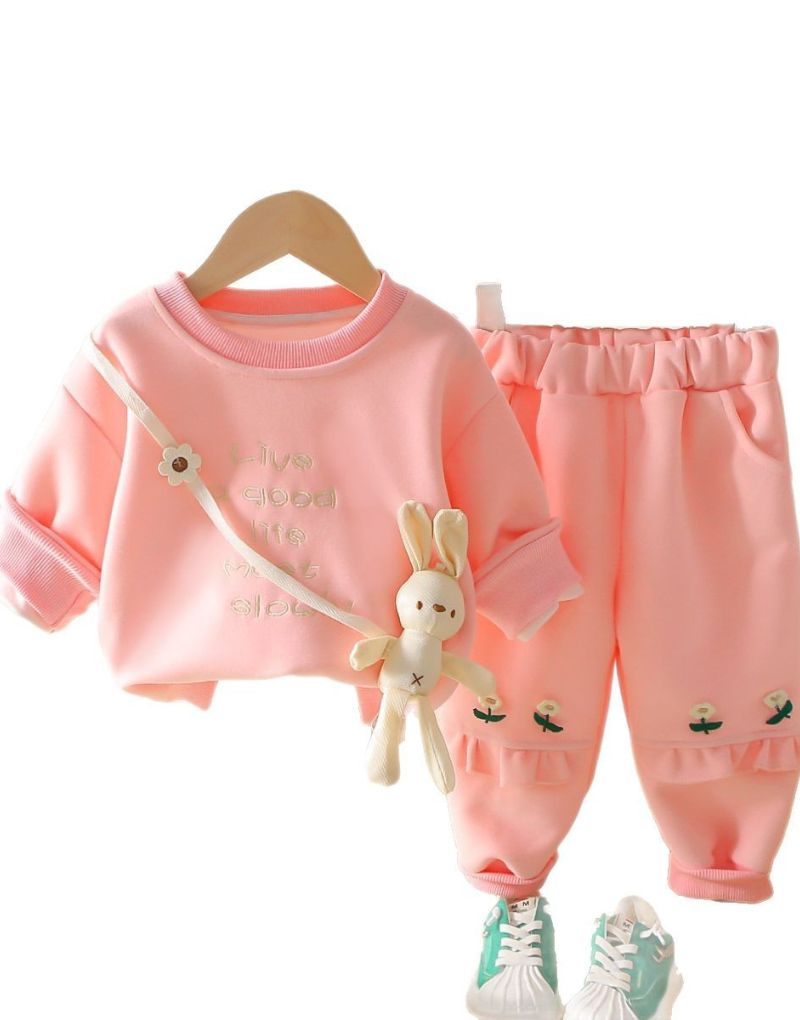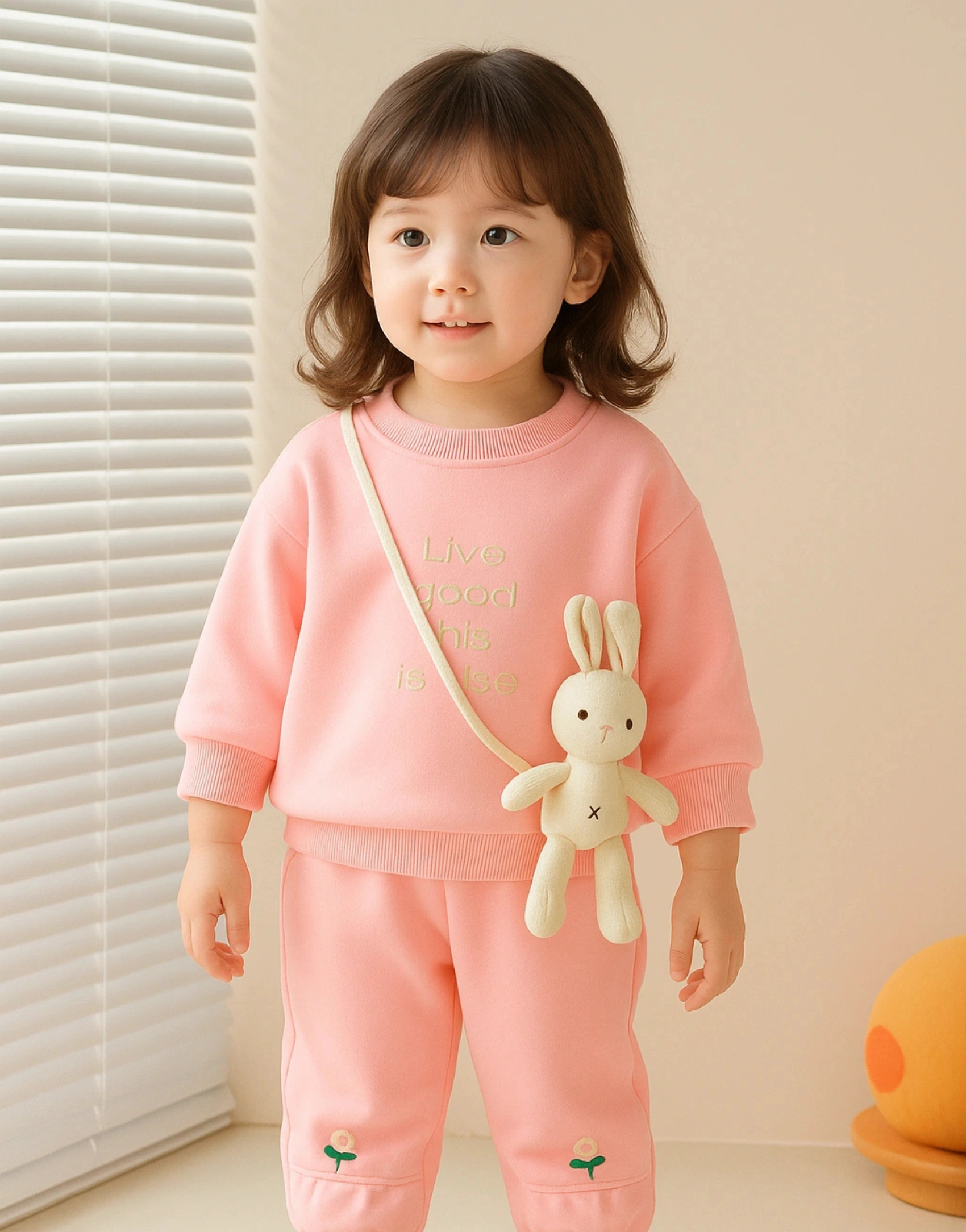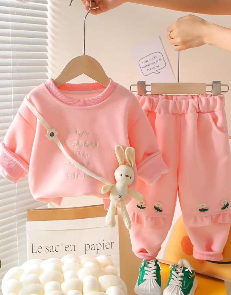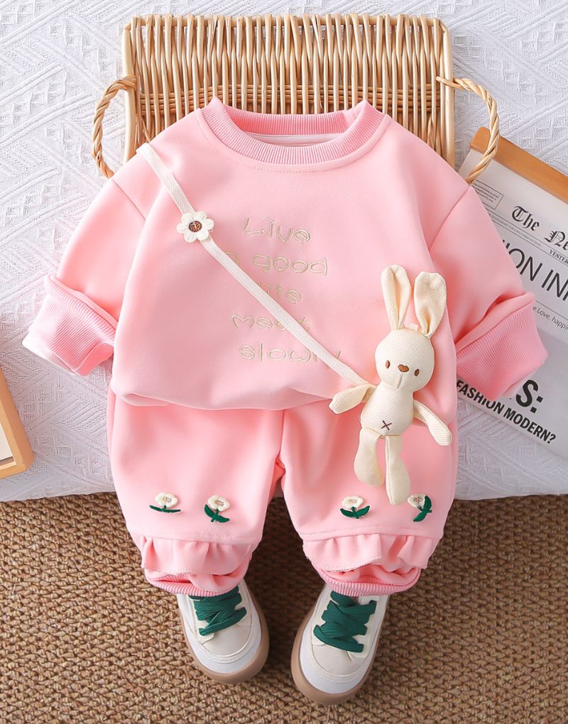 Brighten up your little one’s day with this adorable pink co-ord set! The soft sweatshirt features sweet, embroidered details and comes with a playful mini bunny bag, while the joggers are decorated with dainty flower accents. Perfect for playtime, outings, or cozy days indoors — a dreamy outfit full of charm and comfort.