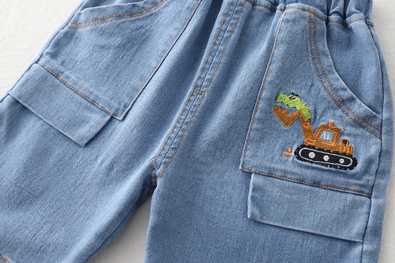 Charge up playtime style with this sky-blue tee covered in colorful robot-dino doodles. The denim shorts with quirky dino-tank embroidery complete the look, making it a perfect pick for curious kids with big imaginations and even bigger energy.