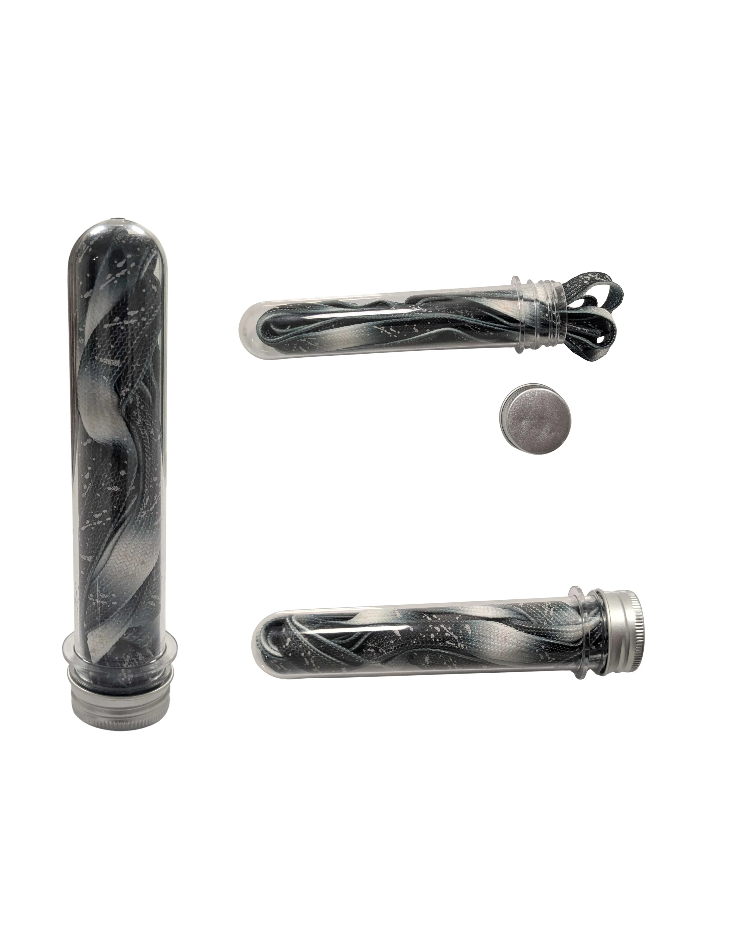 Step into style with these Tubelaces featuring a black and white galaxy-inspired gradient. With a mix of dark tones and star-like speckles, these shoelaces add a futuristic edge to your sneakers. Made from durable woven fabric and packaged in the signature Tubelaces tube, they’re perfect for sneakerheads who want to stand out.